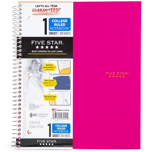 Five Star® 1-Subject College Ruled Spiral Notebook 8.5in x 11in