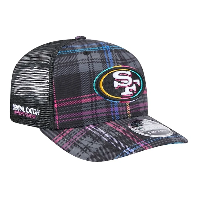 San Francisco 49ers 2024 NFL Crucial Catch Plaid New Era 9SEVENTY Trucker Snapback Hat