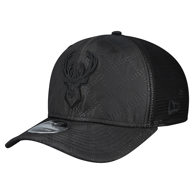 Men's New Era Black Milwaukee Bucks Quilted 9SEVENTY Trucker Adjustable Hat