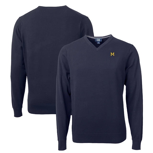 Men's Cutter & Buck Navy Virginia Cavaliers Vintage Lakemont Tri-Blend V-Neck Pullover Sweater