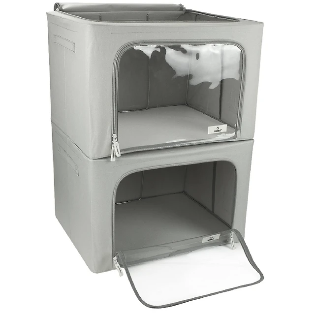 Sorbus 15" Cream Trimmed Twill Collapsible Storage Basket Set