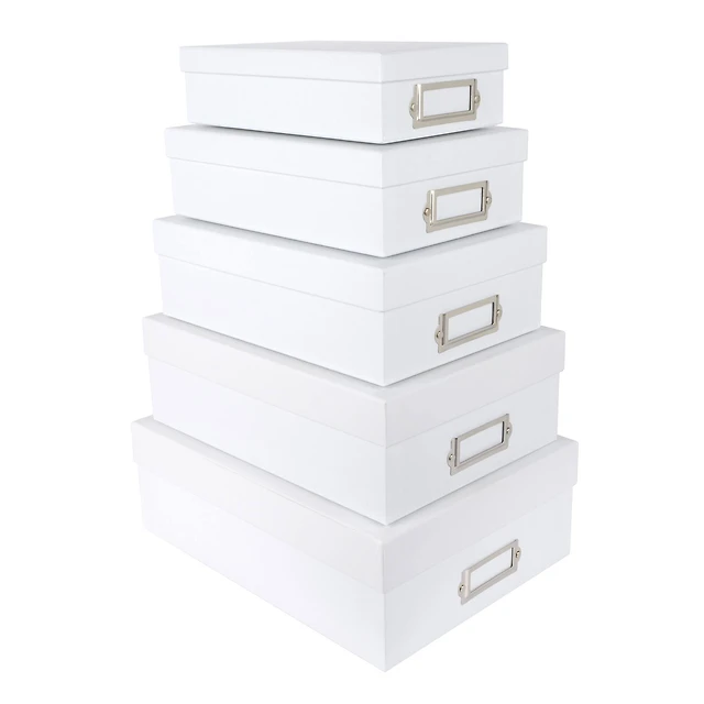 Simplify Small Square White Metal Basket with Bamboo Handles