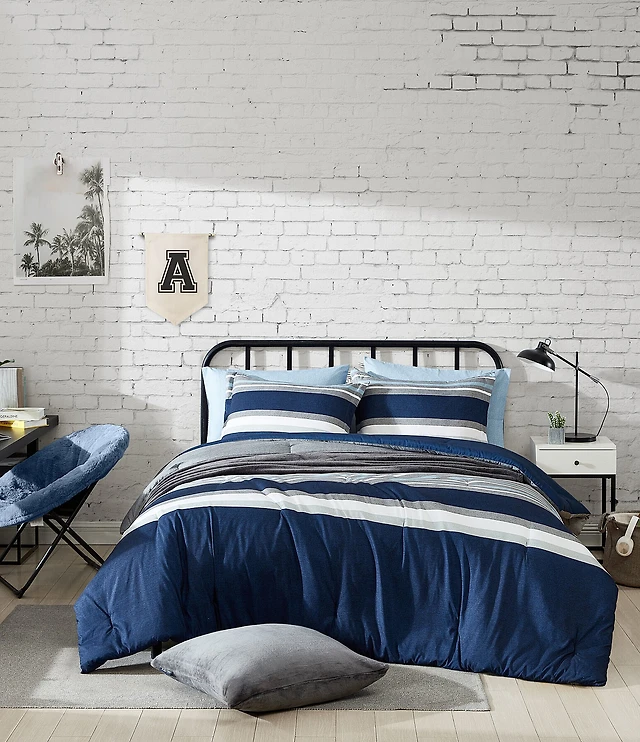 Nautica Solid Navy Brushed Microfiber Reversible Comforter And Bonus Set