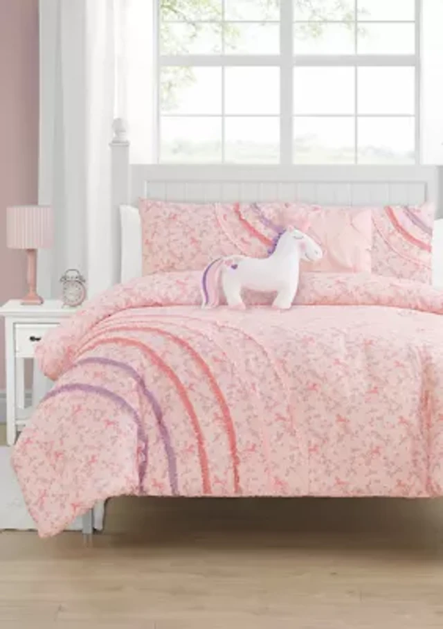 Intelligent Design Ella Unicorn Reversible 100% Cotton Quilt Set With Throw Pillows