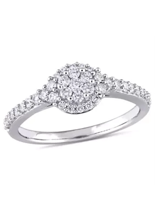 Vera Wang Love Collection 1 CT. T.w. Diamond Swirl Frame Split Shank Engagement Ring in 14K White Gold