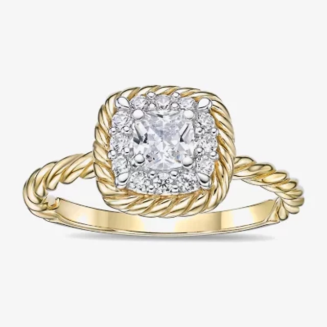 Womens 1 CT. T.W. Natural White Diamond 10K Gold Halo Engagement Ring
