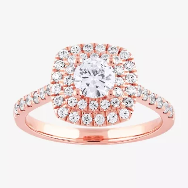 (G / I1) Womens 1 CT. T.W. Lab Grown White Diamond 10K Gold Round Halo Engagement Ring