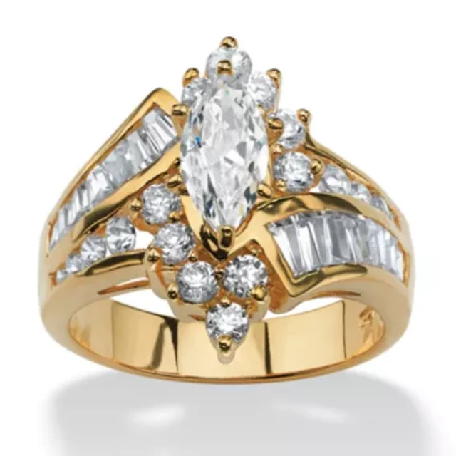 DiamonArt® Womens 3 1/2 CT. T.W White Cubic Zirconia 14K Gold Over Silver Round Engagement Ring