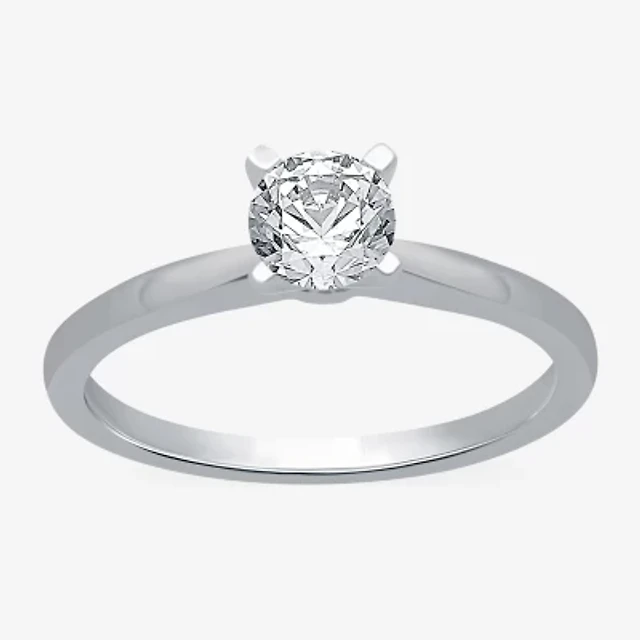 (Si2/G) Womens 1 CT. T.W. Lab Grown White Diamond 10K White Gold Round Side Stone Engagement Ring