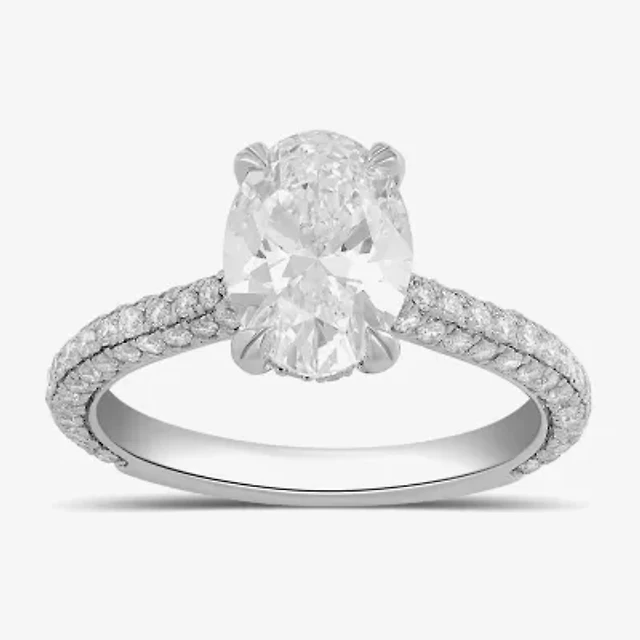 Love Lives Forever (I / I1) Womens 3 1/2 CT. T.W Lab Grown White Diamond 14K Gold Oval Side Stone 3-Stone Engagement Ring
