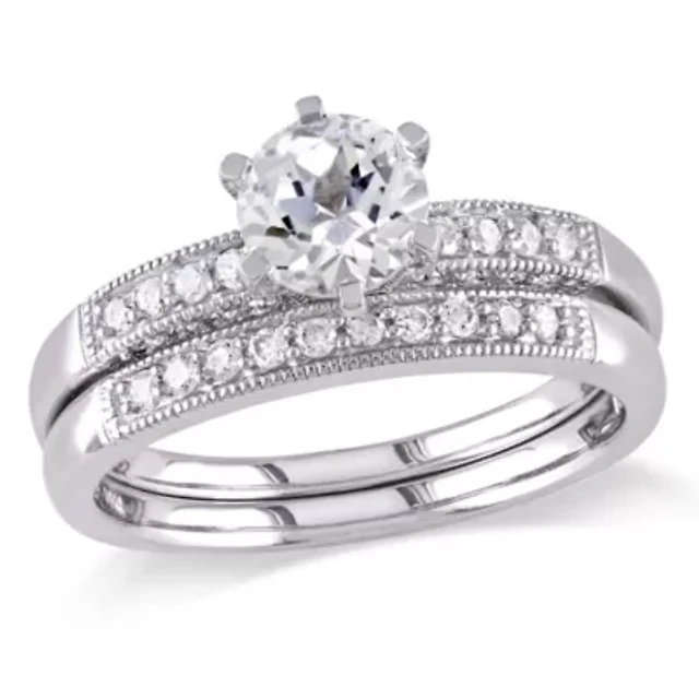 1 ct. t.g.w. Created Blue Sapphire and 1/6 t.w. Diamond Bridal Ring Set 10K White Gold