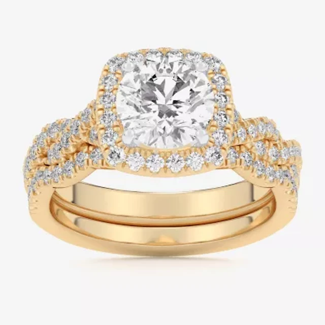 I Said Yes (H-I / I1) Womens 1 1/ CT. T.W. Lab Grown White Diamond Sterling Silver or 14K Gold Over Cushion Side Stone Halo Bridal Set