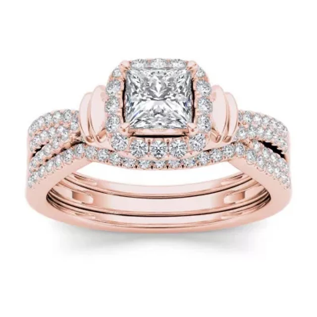 Womens 1 CT. T.W. Natural White Diamond 10K Gold Rose Cushion Bridal Set