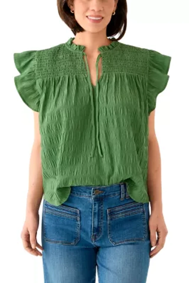 Petite Bubble Chiffon Flutter Sleeve Blouse