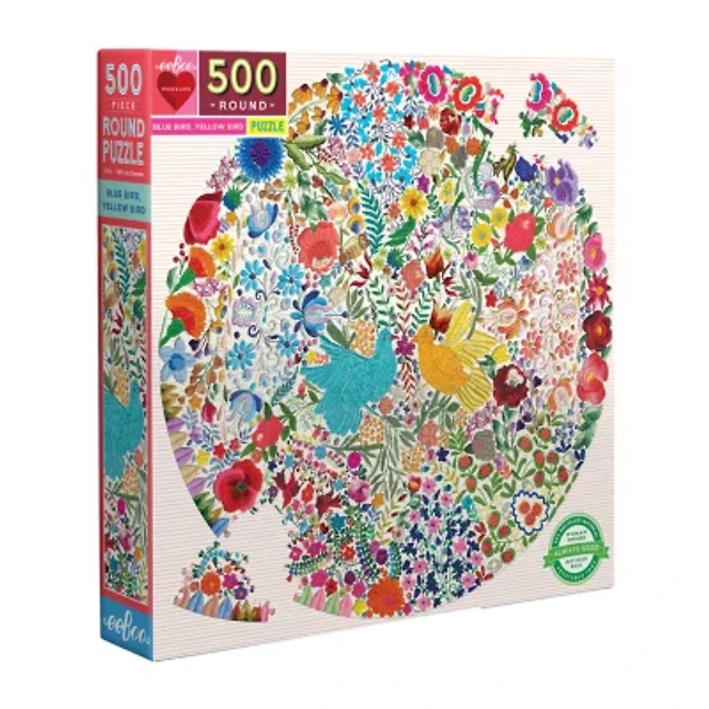 Eeboo Piece And Love Blue Bird Yellow Bird 500 Piece Adult Round Jigsaw 500-pc. Puzzle