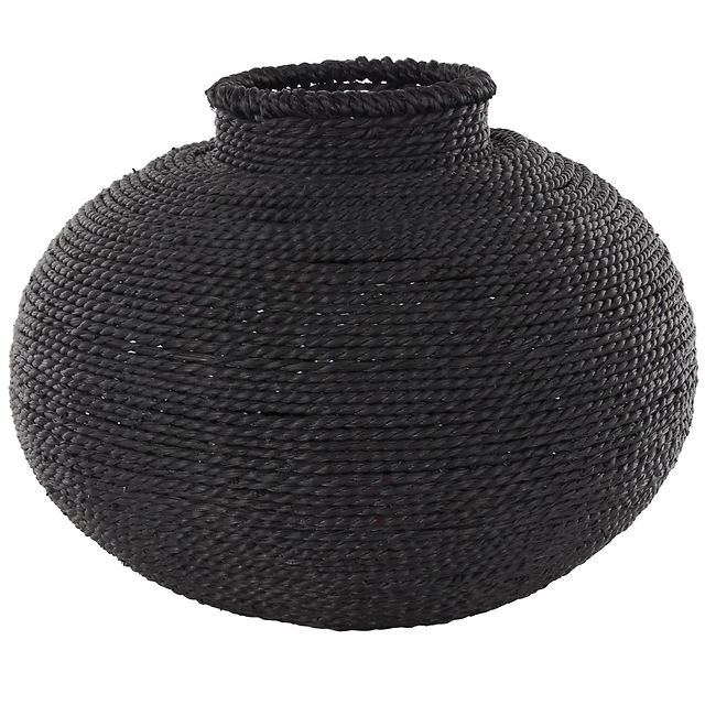 19" Clear Glass Handmade Vase with Brown Rattan Woven Lower Body
