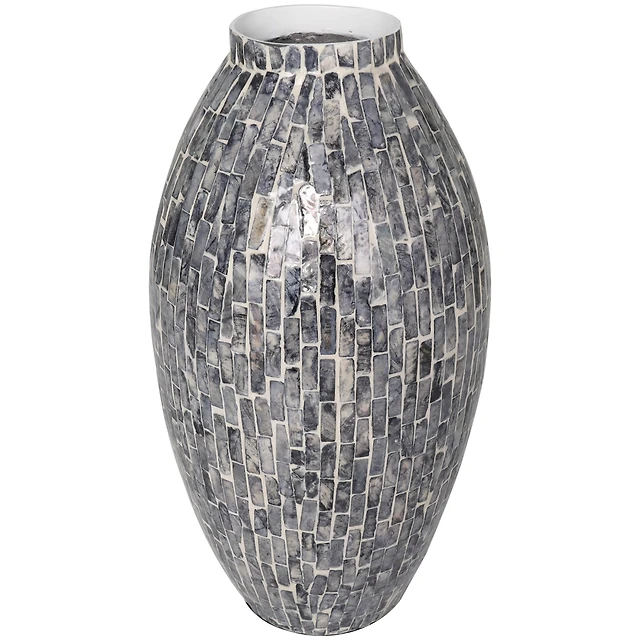Cream Ceramic Textured Geometric Vase with Checkered Pattern