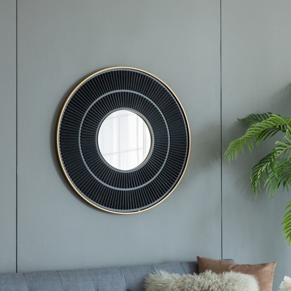 Glitzhome® 23" Black Metal Glass Round Wall Mirror