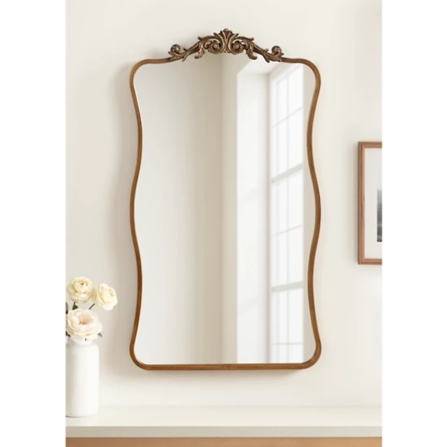 Hello Honey® 33" Antique Gold Finish Modern Scallop Shaped Metal Wall Mirror
