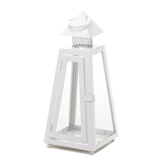 10.75" White Scrollwork Candle Lantern