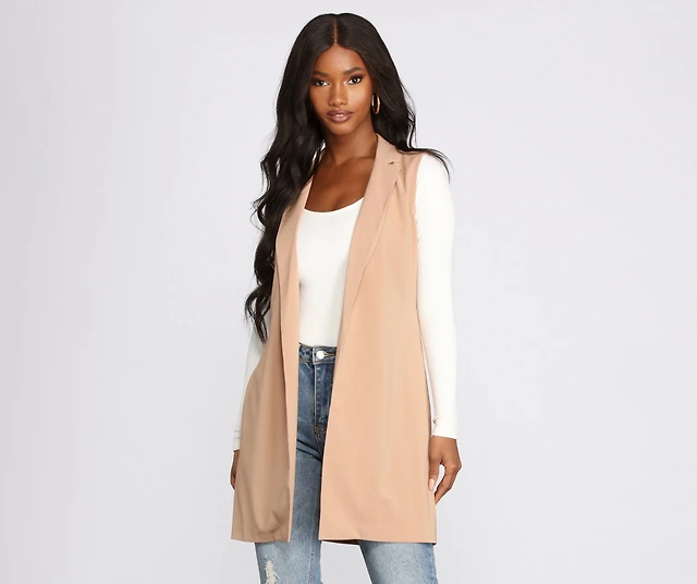 Buy Brown Suede Open Front Duster Vest Online from Earthbound