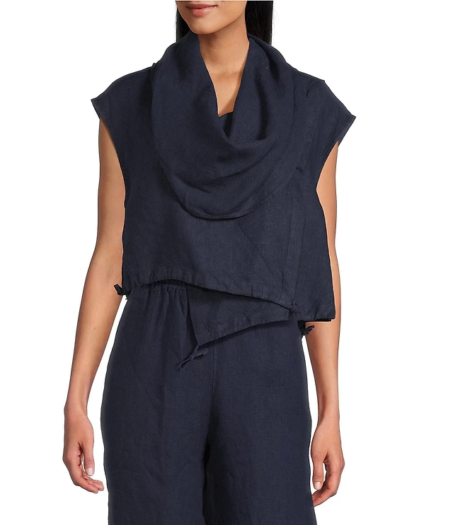 Bryn Walker Pennie Light Linen Cowl Neck Cap Sleeve Asymmetrical Hem Cropped Vest