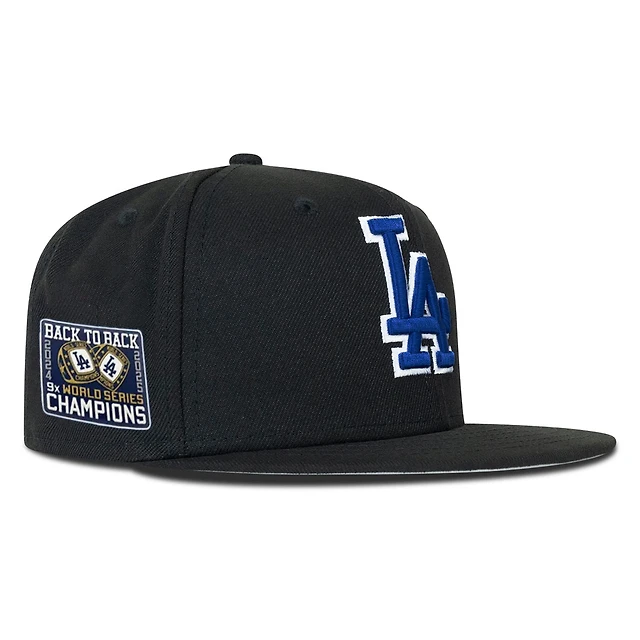 Los Angeles Dodgers Black and White Back to WS Champs Ring Patch Grey UV New Era 59FIFTY Fitted Hat