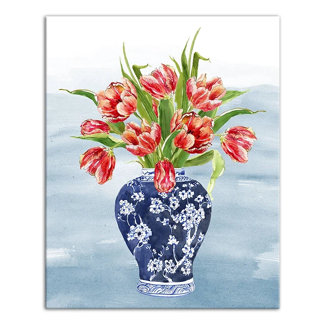 Chinoiseire Tulips 16" x 20" Canvas Wall Art
