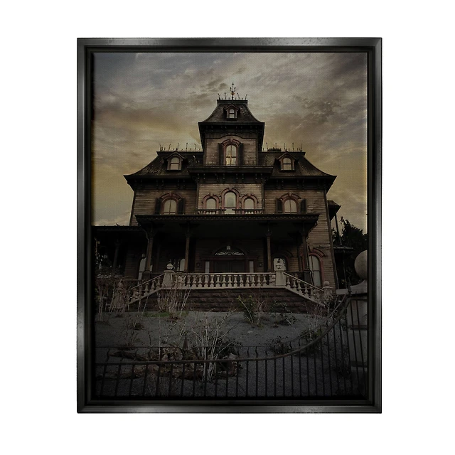 Stupell Industries Haunted House Landscape Framed Floater Canvas Wall Art