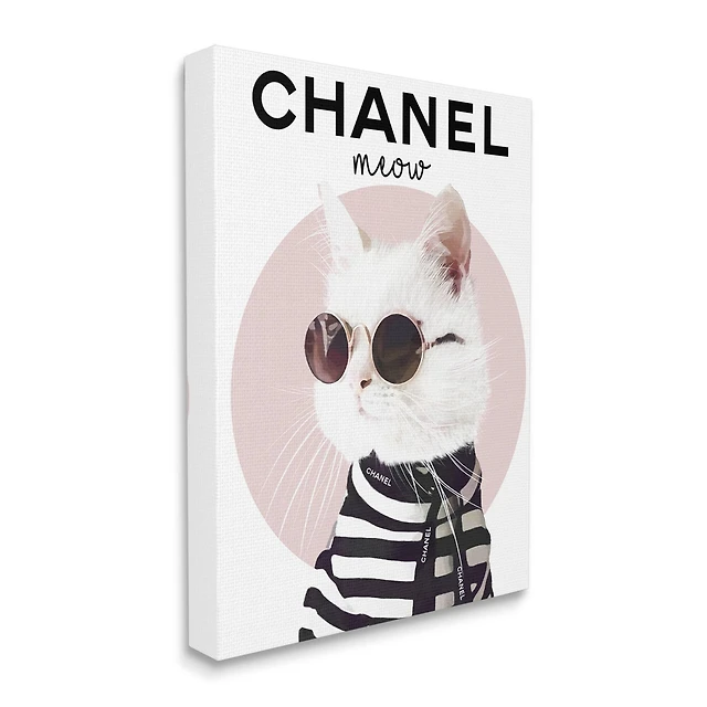 Stupell Industries Chic Kitty Cat Meow Glam Fashion Pink Circle Canvas Wall Art