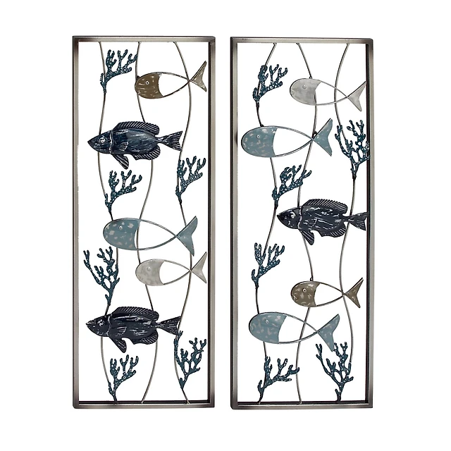Set of 2 Blue Metal Coastal Fish Wall Decor, 11" x 29"