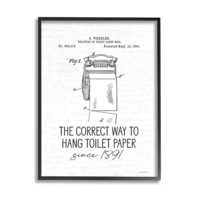 Stupell Industries Vintage Bathroom Diagram Correct Way Hang Toilet Paper Framed Wall Art