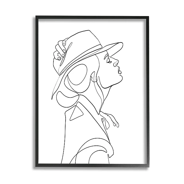 Stupell Industries Fluid Black Line Woman Modeling Hat Abstraction in Black Frame Wall Art