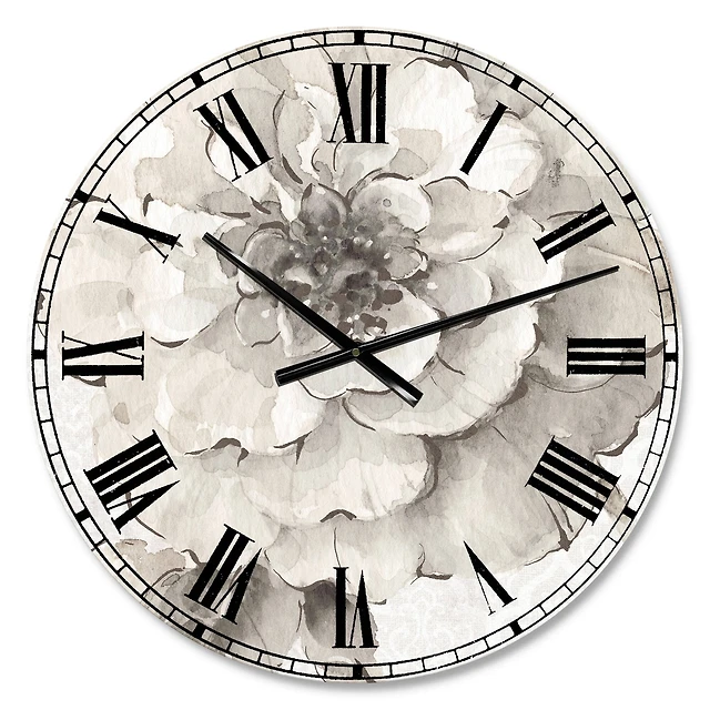 Designart Grey Watercolor Flower II Traditional Wall Clock