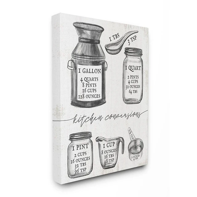 Stupell Industries Kitchen Conversion Chart Neutral Gray Word Canvas Wall Art
