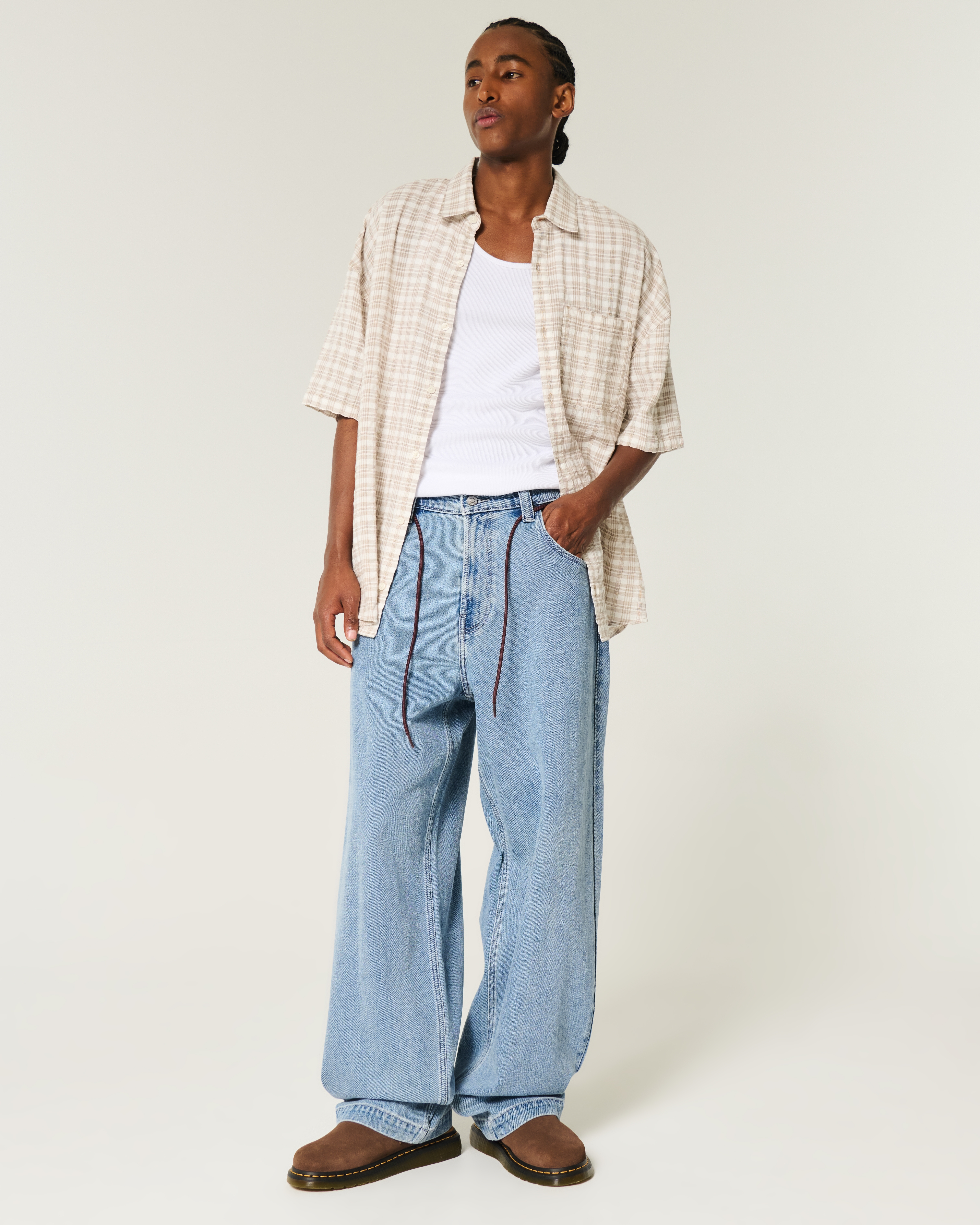 Boyfriend Fit Plaid-Detail Jean