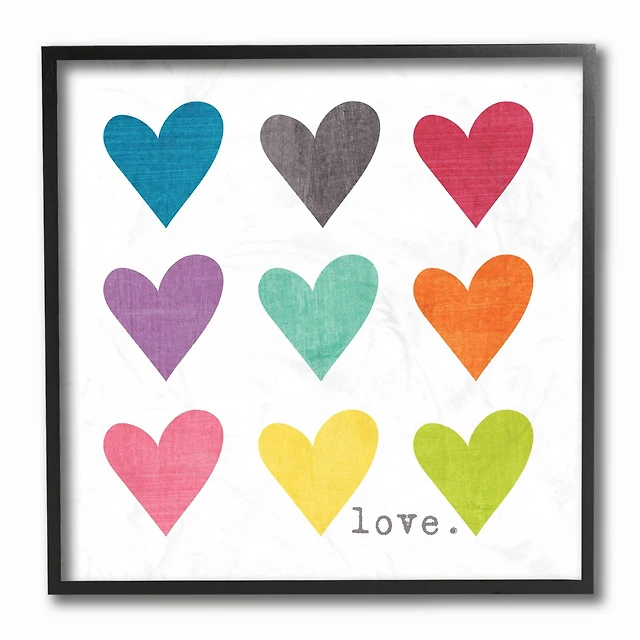 Stupell Industries Watercolor Cute Hearts Love Framed Wall Art