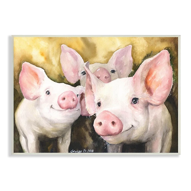 Stupell Industries Baby Pigs Animal Yellow Watercolor Painting Framed Wall Art