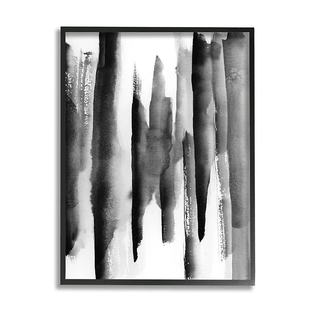 Stupell Industries Vertical Black Ink Strokes Abstract Watercolor Over White Canvas Wall Art