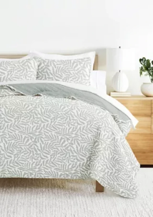 Watercolor Leaves Reversible 3-pc. Queen Quilt Set