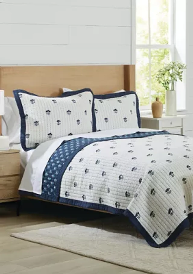 Linery Blue Floral Reversible Quilt Set