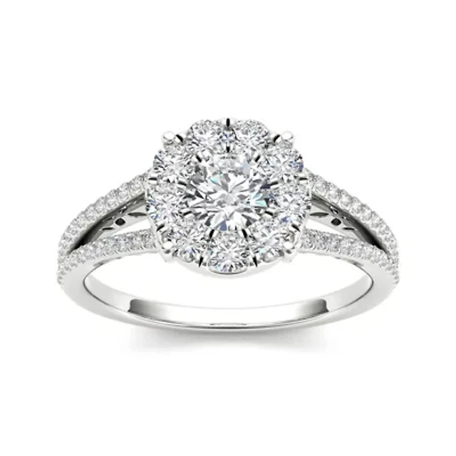 Womens 1 1/ CT. T.W. Natural White Diamond 14K Gold Round Halo Engagement Ring