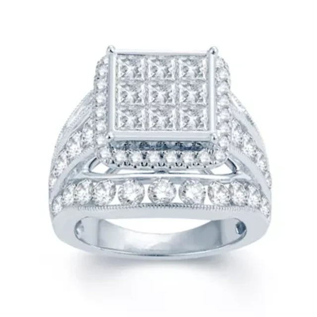 G / I1) Womens 2 CT. T.W. Lab Grown White Diamond 10K Gold Side Stone Engagement Ring