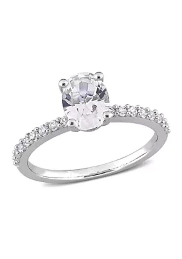 Oval Blue Sapphire and 5/8 CT. T.w. Diamond Sunburst Frame Ring in 10K White Gold