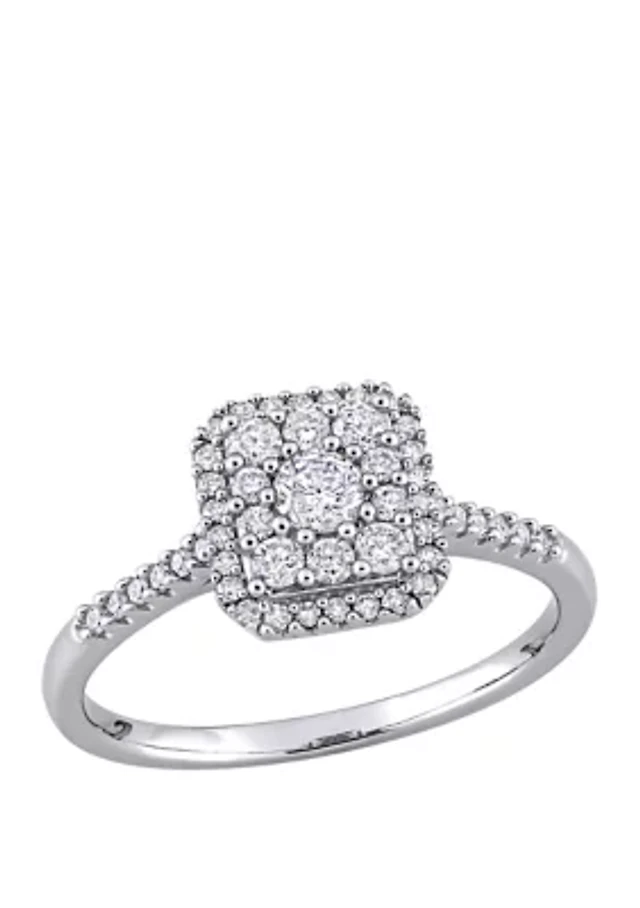 Diamond Blossom Womens 1/4 CT. T.W. Natural White 10K Gold Halo Cocktail Ring