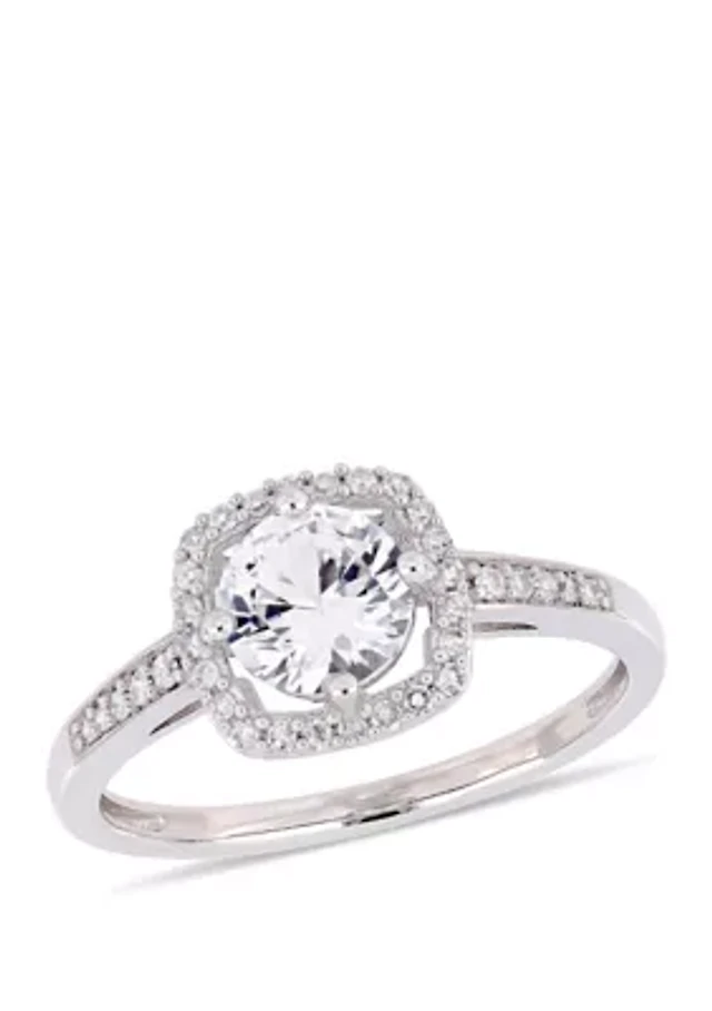 Lab Created White Sapphire and 1/4 ct. t.w. Diamond Bridal Ring Set 10K Gold