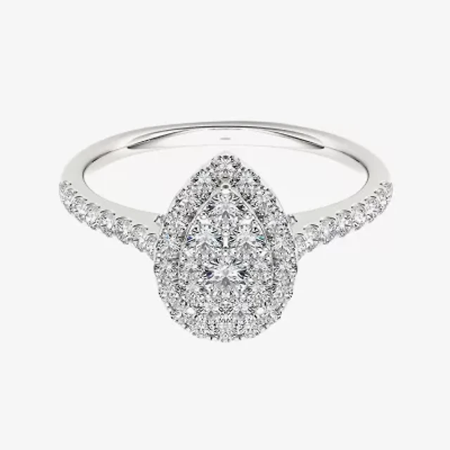 Certified Womens 1/2 CT. T.W. Natural White Diamond 14K Gold Pear Halo Cocktail Ring