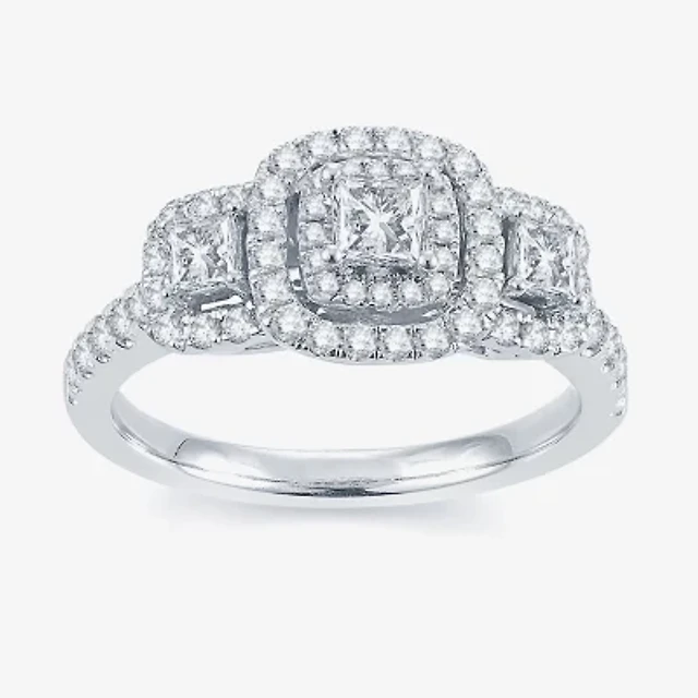 Modern Bride® Signature 1 CT.T.W. Natural Diamond 14K White Gold 3-Stone Princess-Cut Ring