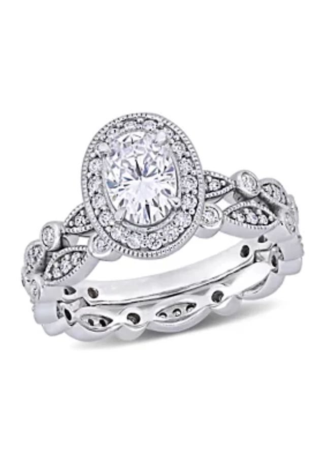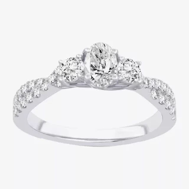 1 CT. T.w. GIA-Graded Oval Diamond Frame Twist Shank Engagement Ring in 14K White Gold (I/Si2)