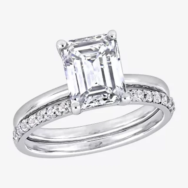 2 CT. T.w. Certified Emerald-Cut Lab-Grown Diamond Frame Engagement Ring in 14K White Gold (F/Vs2)